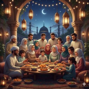 Ramadan is also a time that brings families and communities closer together. Families gather to break their fast at iftar and share meals together. Many Muslims also attend special nightly prayers called Taraweeh at mosques. These gatherings create a strong sense of unity, kindness, and togetherness among people.